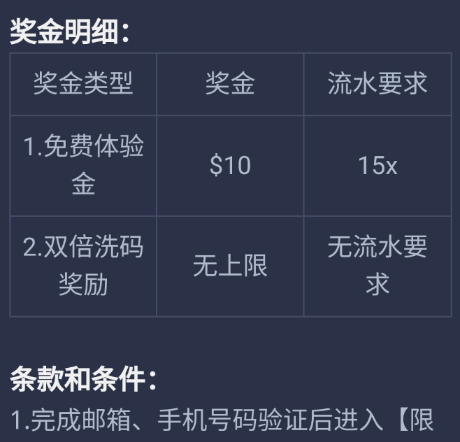 活动详情:注册绑定邮箱,手机号优惠中心,限时活动领取10U/15倍流水即可出款。